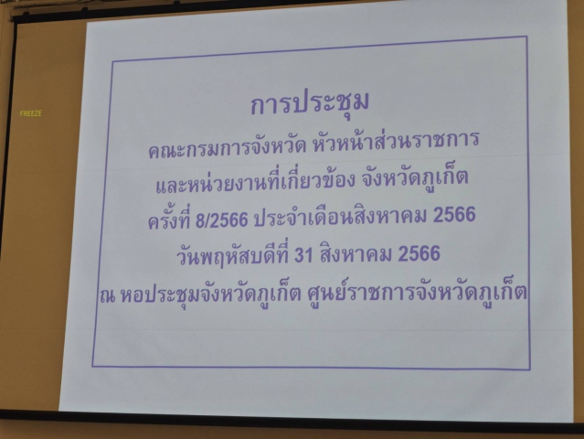 การประปาส่วนภูมิภาคสาขาภูเก็ต เข้าร่วมประชุมคณะกรมการจังหวัด หัวหน้าส่วนราชการ และหน่วยงานที่เกี่ยวข้อง จังหวัดภูเก็ต ครั้งที่ 8/2566 ประจำเดือน สิงหาคม 2566