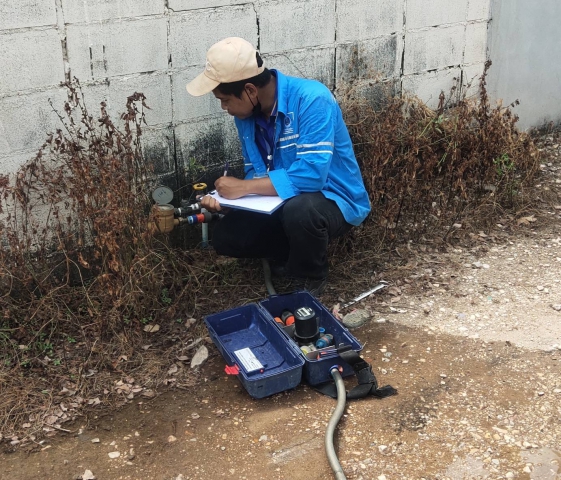 นายนิสิต ใจอินทร์ ผจก.กปภ.สาขากำแพงเพชร มอบหมายให้พนักงานในสังกัด ลงพื้นที่ดำเนินการตรวจสอบมาตรที่มีแนวโน้มชำรุดในระบบติดตามมาตร โดยวิธีการทดสอบมาตรวัดน้ำหาค่าความคาดเคลื่อนของมาตรวัดน้ำ (+/- 4%) ตามมาตรฐานของ กปภ. ประจำเดือนสิงหาคม 2566 พบมาตรวัดน้ำเดินผิดปกติ 1 เครื่อง ได้ดำเนินการเปลี่ยนทันที