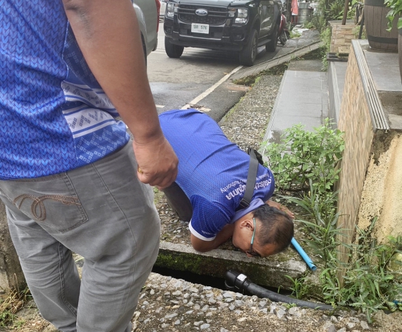 กปภ.สาขาระนอง ลงพื้นที่ค้นหาท่อแตกรั่วลดน้ำสูญเสีย ตามแผนประจำเดือน กันยายน 2566