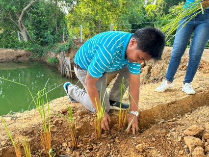 พร้อมด้วย หัวหน้างาน และพนักงาน ในสังกัด ดำเนินการปลูกหญ้าแฝก บริเวณ คันดินตามแนวทางพระราชดำริ เพื่อป้องกัน