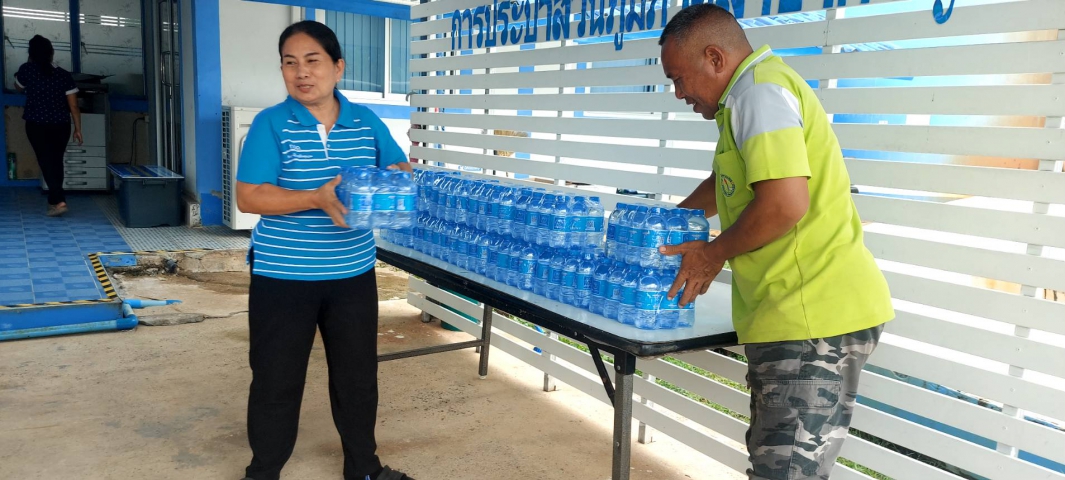 การประปาส่วนภูมิภาคสาขากาญจนดิษฐ์ มอบน้ำดื่มตราสัญญลักษณ์ กปภ.ให้กับสำนักงานเทศบาลกาญจนดิษฐ์