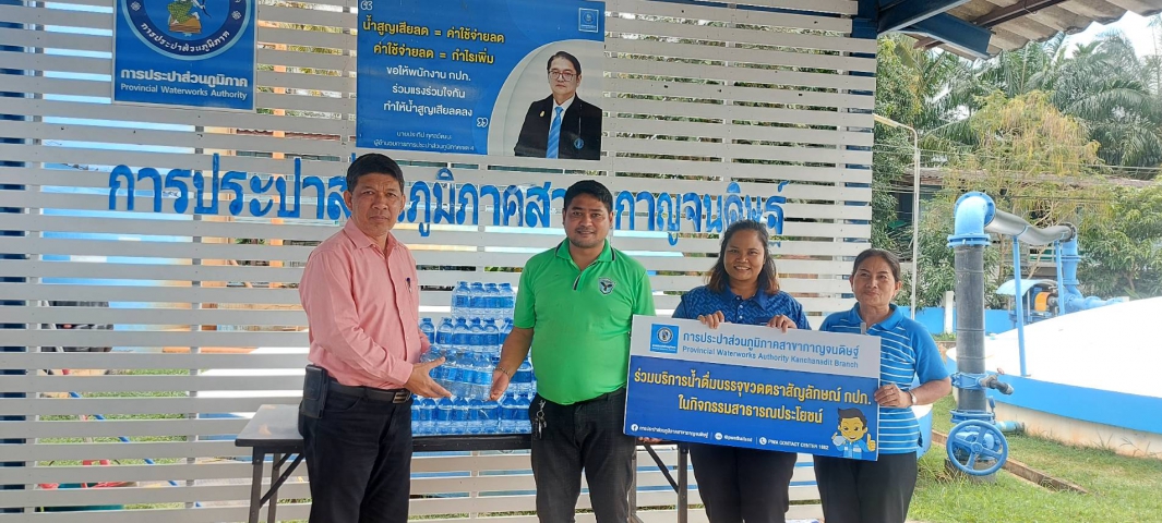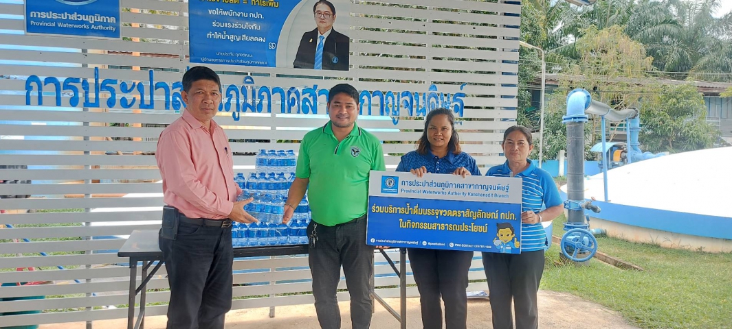 วันพุธที่ 25 ตุลาคม 2566 นายสุรพงศ์ สมหวัง ผจก.กปภ.สาขากาญจนดิษฐ์ หัวหน้างานอำนวยการและพนักงานในสังกัด มอบน้ำดื่มตราสัญลักษณ์ กปภ. จำนวน 192 ขวด ให้กับสำนักงานเทศบาลตำบลกาญจนดิษฐ์ จังหวัดสุราษฎร์ธานี เพื่อใช้ในโครงการจัดงานส่งเสริมประเพณีชักพระทอดผ้าป่า ประจำปี 2566 ในระหว่างวันที่ 27-30 ตุลาคม 2566 ต่อไป