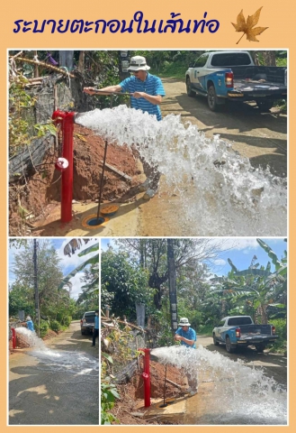 การประปาส่วนภูมิภาคสาขาพังงา ดำเนินการตามแผนงานบริการและควบคุมน้ำสูญเสีย โบล์วน้ำเพื่อระบายตะกอนในเส้นท่อ บริเวณบ้านนา หมู่ที่ 2 ตำบลตากแดด อำเภอเมืองพังงา จังหวัดพังงา