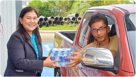 และวันนี้สำหรับการเปิดให้บริการฯ ได้มอบน้ำดื่มบรรจุขวด พร้อมของที่ระลึกของ กปภ. ให้กับลูกค้าที่มาใช้บริการไดร์ฟทรูด้วย เป็นการสร้างความประทับใจให้กับลูกค้า