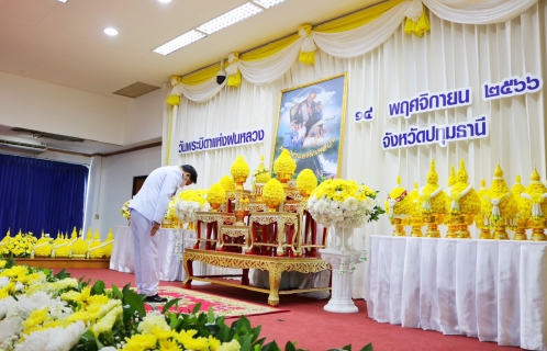 เมื่อวันอังคารที่ 14 พฤศจิกายน 2566 การประปาส่วนภูมิภาคสาขาปทุมธานี โดย นายกฤษณ์ ก้อนนาค ผู้จัดการการประปาส่วนภูมิภาคสาขาปทุมธานี มอบหมายให้นางสาวชาลิณีย์ พูลสุวรรณ หัวหน้างานจัดเก็บรายได้ 1 พร้อมด้วยพนักงานงานในสังกัด เข้าร่วมพิธีวางพานพุ่มดอกไม้สดถวายราชสักการะ น้อมรำลึกในพระมหากรุณาธิคุณ พระบาทสมเด็จพระบรมชนกาธิเบศร มหาภูมิพลอดุลยเดชมหาราช บรมนาถบพิตร เนื่องในวันพระบิดาแห่งฝนหลวง ประจำปี 2566 ณ อาคารศาลารักษ์ปทุม ศาลากลางจังหวัดปทุมธานี โดยมีนายภาสกร บุญญลักษม์ ผู้ว่าราชการจังหวัดปทุมธานี เป็นประธานในพิธีวางพานพุ่มดอกไม้ในครั้งนี้