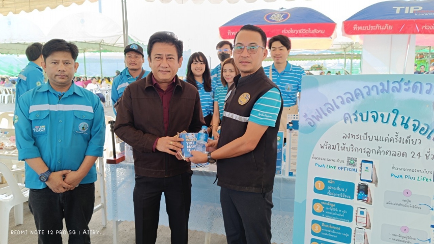 เมื่อวันอาทิตย์ที่ 19 พฤศจิกายน 2566 การประปาส่วนภูมิภาคสาขาคลองหลวง โดย นายวินัย สุขสุมิตร ผจก.กปภ.สาขาคลองหลวง มอบหมายให้ว่าที่ ร.ต.รัชเศรษฐ์ ไกรฤกษ์ ผช.ผจก.กปภ.สาขาคลองหลวง พร้อมด้วย นายธีระ เกษร หนง. 8 งานบริการและควบคุมน้ำสูญเสีย 2 , นางสาวภัทรา สุขสมศักดิ์ หนง. 8 งานจัดเก็บรายได้ 1 , นางรุ่งนภา เสริมสุข หนง. 8 งานจัดเก็บรายได้ 2 และพนักงานในสังกัด กปภ.สาขาคลองหลวง เข้าร่วมกิจกรรมโครงการเทศบาลเคลื่อนที่พบประชาชน บริเวณหมู่บ้านไวท์เฮาส์ ตำบลคลองหนึ่ง อำเภอคลองหลวง จังหวัดปทุมธานี โดยมีนายเอกพจน์ ปานแย้ม นายกเทศมนตรีเมืองคลองหลวง เป็นประธานกล่าวเปิดงาน ในครั้งนี้ กปภ.สาขาคลองหลวง ได้นำน้ำดื่มตราสัญลักษณ์ กปภ. จำนวน 360 ขวด แจกจ่ายให้กับประชาชนที่เข้าร่วมกิจกรรมฯ และได้ร่วมออกบูธเพื่อแนะนำการให้บริการและรับฟังความคิดเห็นของลูกค้า เพื่อนำข้อมูลที่ได้มาปรับปรุงและพัฒนาให้ดียิ่งขึ้น พร้อมทั้งให้คำแนะนำขั้นตอนการลงทะเบียนและชำระค่าน้ำผ่าน App PWA Plus Life และ PWA Line Official ให้กับลูกค้า เพื่ออำนวยความสะดวกในการชำระค่าน้ำและบริการอื่นๆ ของ กปภ.