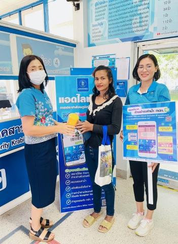 การประปาส่วนภูมิภาคสาขากระบี่ นำโดยนางนุชนภา พิณทอง ผู้จัดการการประปาส่วนภูมิภาคสาขากระบี่ นายชลินธร ชานะมัย ผู้ช่วยผู้จัดการการประปาส่วนภูมิภาคสาขากระบี่ จัดกิจกรรม ประปามอบความสุข เชิญชวนลูกค้าดาวน์โหลด/ชำระค่าน้ำผ่าน PWA Always On รับของที่ระลึกจาก กปภ. แก้วน้ำ 5 วัน 5สี ณ สำนักงานการประปาส่วนภูมิภาคสาขากระบี่ ในระหว่างวันที่ 20 - 24 พฤศจิกายน 2566 เพื่อเป็นการขอบคุณและสร้างความสัมพันธ์อันดี ก่อให้เกิดความประทับใจในบริการที่เหนือความคาดหมายให้กับผู้รับบริการ ตอกย้ำและเน้นการดำเนินงานเพื่อมุ่งสู่องค์กรที่เป็นเลิศและยั่งยืน ด้านการให้บริการและบริหารจัดการน้ำประปา
