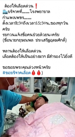 สำหรับผู้ที่จะร่วมบริจาคโลหิตสามารถไปได้ที่ธนาคารเลือด โรงพยาบาลกำแพงเพชร แจ้งชื่อบริจาคโลหิตให้กับนายกฤษณพล ประเสริฐอุดมศักดิ์ ได้ทุกวันตั้งแต่เวลา 08.30 - 15.30 น.