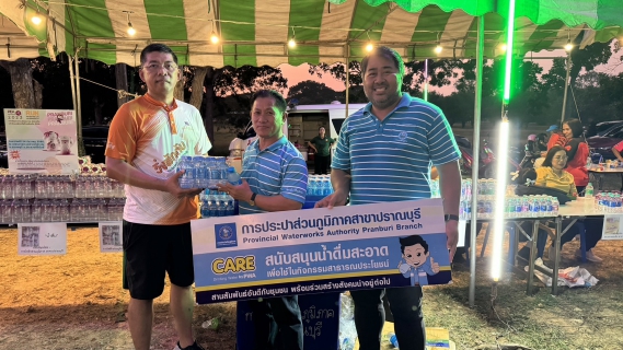 พร้อมด้วยหัวหน้างานและพนักงานในสังกัด มอบน้ำดื่มตราสัญลักษณ์ กปภ. จำนวน 500ขวด เพื่อนำไปใช้ในกิจกรรม