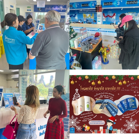 นายวินัย สุขสุมิตร ผจก.กปภ.สาขาคลองหลวง นำทีมผู้บริหารและพนักงานในสังกัด จัดกิจกรรมส่งต่อความสุข มอบของที่ระลึกในโอกาสวันขึ้นปีใหม่ แก่ลูกค้าของ กปภ.สาขาคลองหลวง เพียงแอดไลน์ @PWAThailand หรือ ดาวน์โหลดแอปพลิเคชั่น PWA Plus Life แล้วชำระค่าน้ำประปา และผู้ที่มาชำระค่าน้ำตรงเวลาที่สาขา เพื่อเป็นการสร้างความสัมพันธ์อันดีกับลูกค้า โดยกิจกรรมในครั้งนี้มีขึ้นระหว่างวันที่ 25 ธันวาคม 2566 จนถึง 15 มกราคม 2567