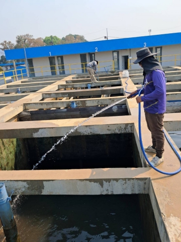 วันพุธที่ 24 เมษายน 2567 กปภ.สาขากาญจนบุรี โดย นายพิชัย พันธุ์อร่าม ผจก.กปภ.สาขากาญจนบุรี มอบหมายให้ นายไพโรจน์ จิระธนานันต์ หัวหน้างาน และทีมงานผลิต ดำเนินการล้างถังตกตะกอนโรงกรอง ประจำเดือน เมษายน 2567 เพื่อเป็นการปรับปรุงคุณภาพน้ำประปาให้ใสสะอาดเป็นไปตามมาตรฐานที่กำหนด สร้างความเชื่อมั่นและความประทับใจในการให้บริการแก่ลูกค้า