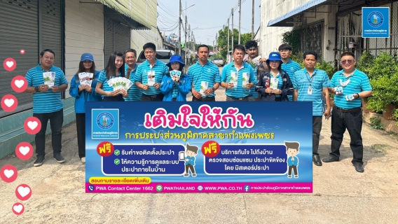 นายนิสิต ใจอินทร์ ผจก.กปภ.สาขากำแพงเพชร พร้อมด้วยพนักงานในสังกัด ลงพื้นที่เชิญชวนประชาชนชาวกำแพงเพชร " ประหยัดน้ำสู้ภัยแล้ง " ร่วมกันประหยัดน้ำเพื่อให้มีน้ำใช้ตลอดหน้าแล้งนี้ ณ บริเวณหมู่บ้านดารารัตน์ และ ถ.เทศา 2 ต.ในเมือง อ.เมือง จ.กำแพงเพชร ภายใต้โครงการเติมใจให้กัน ครั้งที่ 23/2567