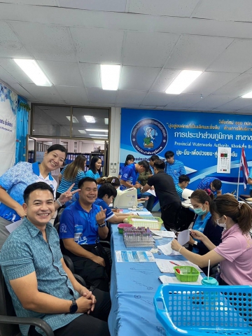 (วันนี้) วันพฤหัสบดีที่ 23 พฤษภาคม 2567 กปภ.สาขาขอนแก่น (พ) นำโดยนายสุเมธ แว่นประชา ผู้จัดการการประปาส่วนภูมิภาคสาขาขอนเเก่น (ชั้นพิเศษ) เเละนางสาวนฤมล ประภาสมุทร ผู้ช่วยผู้จัดการฯ พร้อมหัวหน้างาน พนักงาน ลูกจ้างในสังกัด จัดกิจกรรม ให้มีการตรวจสุขภาพประจำปีงบประมาณ 2567 โดยมีทีมเจ้าหน้าที่และพยาบาล จากโรงพยาบาลส่งเสริมสุขภาพ ศูนย์อนามัยที่ 7 ขอนแก่น ให้บริการวัดความดันโลหิต ตรวจประเมินร่างกายเบื้องต้น พร้อมเจาะเลือดและเอกซเรย์ โดยรถ x-ray เคลื่อนที่ ณ สำนักงาน กปภ.สาขาขอนแก่น (พ)