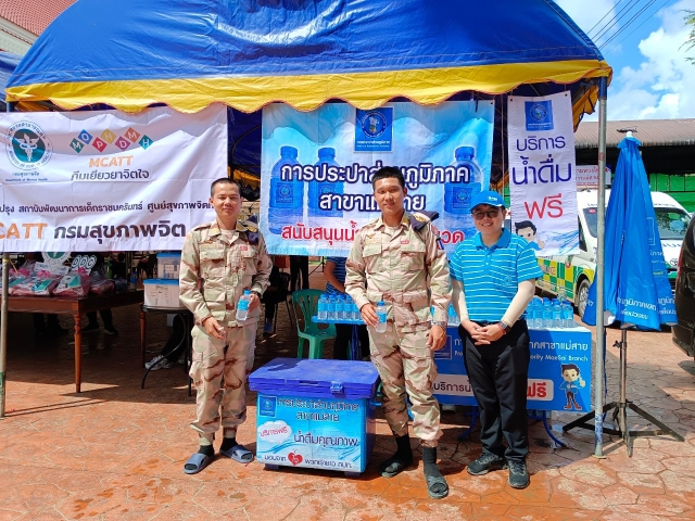 วันที่ 28 กันยายน 2567 นายอภิศักดิ์ สวัสดิรักษ์ ผู้จัดการการประปาส่วนภูมิภาคสาขาแม่สาย พร้อมด้วยหัวหน้างาน และพนักงานในสังกัด ร่วมให้การต้อนรับ นางสาวแพทองธาร ชินวัตร นายกรัฐมนตรี ในการลงพื้นที่ตรวจราชการ ติดตามสถานการณ์อุทกภัยและเยี่ยมให้กำลังใจผู้ประสบภัย ณ วัดพรหมวิหาร อ.แม่สาย จ.เชียงราย โดย กปภ.สาขาแม่สาย ร่วมมอบน้ำดื่มบรรจุขวดตราสัญลักษณ์ กปภ. แก่นายกรัฐมนตรี คณะผู้ติดตาม หน่วยงานราชการต่างๆ และพี่น้องประชาชนที่มาร่วมงานในวันนี้ด้วย