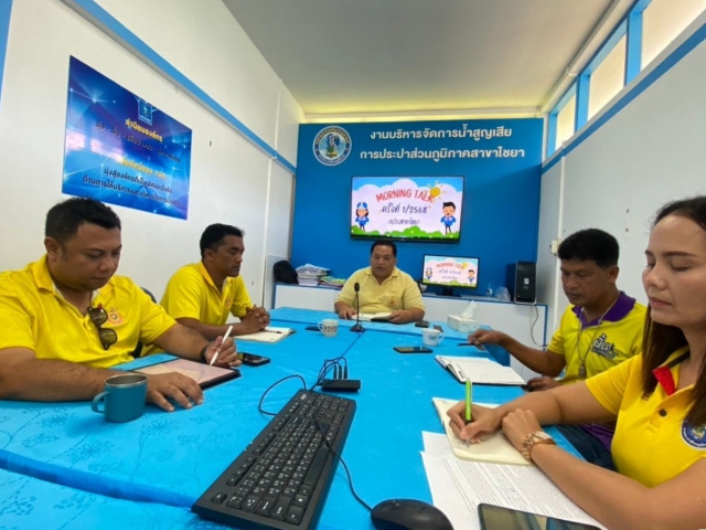 วันพฤหัสบดี ที่ 3 ตุลาคม 2567 นายสมพงศ์ ณ นคร ผู้จัดการการประปาส่วนภูมิภาคสาขาไชยา พร้อมด้วยหัวหน้างาน พนักงาน และลูกจ้างในสังกัด จัดกิจกรรมสนทนายามเช้า (Morning Talk) ครั้งที่ 1/2568 เพื่อเป็นการพบปะพูดคุย แลกเปลี่ยนความคิดเห็น สอบถามถึงปัญหาในการทำงาน ของแต่ละสายงาน เพื่อร่วมกันหาแนวทางแก้ไขปัญหา ให้งานสำเร็จไปตามเป้าหมายขององค์กร ซึ่งมีประเด็นในการประชุม ดังนี้ แนะนำตัวผู้จัดการ หัวหน้างานผลิต และหัวหน้างานอำนวยการ เนื่องจากแต่งตั้งโยกย้าย เป้างบประมาณปี 2568 การปฏิบัติงานลดน้ำสูญเสียควบคู่ไปกับการขายน้ำ การเพิ่มจำนวนผู้ใช้น้ำ การบริหารการผลิตและจ่ายน้ำจากหน่วยบริการท่าฉางมาแม่ข่ายไชยา และปรับปรุงซ่อมแซมสิ่งอำนวยความสะดวก ปรับปรุงภูมิทัศน์รอบๆสำนักงานให้น่าอยู่