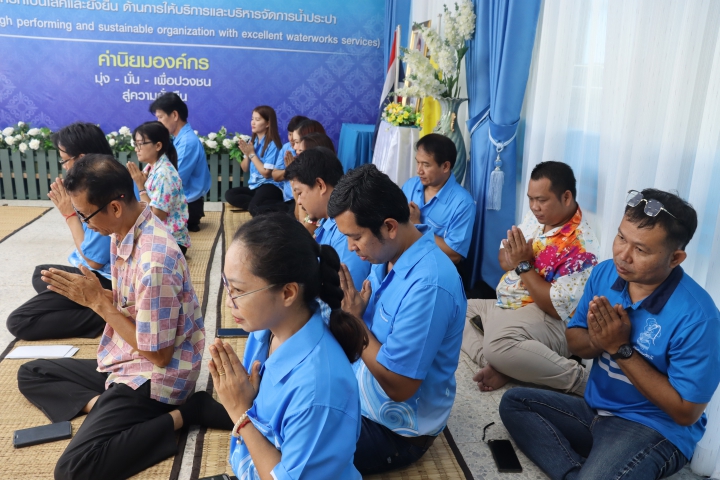 วันที่ 25 เมษายน 2568 กปภ.สาขามหาสารคาม นำโดย นางสาวเยาวเรศ เตชะวงศ์ ผจก.กปภ.สาขามหาสารคาม พร้อมด้วย นายญาณะวัฒน์ ปี่ทอง ผช.ผจก.กปภ.สาขามหาสารคาม หัวหน้างาน และพนักงาน ลูกจ้างในสังกัด ไหว้ศาลพระภูมิเจ้าที่ และจัดพิธีทำบุญถวายเพลพระ เพื่อความเป็นสิริมงคล สร้างขวัญกำลังใจ ในการปฏิบัติงาน ณ สำนักงานการประปาส่วนภูมิภาคสาขามหาสารคาม ถนนมหาชัยดำริห์ ต.ตลาด อ.เมือง จ.มหาสารคาม