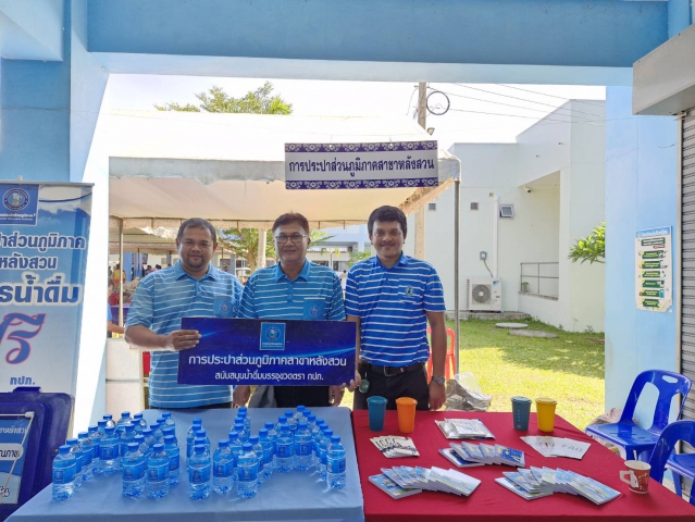 วันที่ 24 เมษายน 2568 เวลา 09.00 น. นำโดย นายธีระพล โชคคณาพิทักษ์ ผจก.กปภ.สาขาหลังสวน พร้อมด้วยหัวหน้างาน และพนักงานในสังกัด เข้าร่วมโครงการจังหวัดพบประชาชนจังหวัดชุมพร"หน่วยบำบัดทุกข์ บำรุงสุข สร้างรอยยิ้มให้ประชาชน" ประจำปี 2568 ครั้งที่ 4 ณ โรงเรียนบ้านในเหมือง หมู่ที่ 10 ต.นาขา อ.หลังสวน จ.ชุมพร พร้อมนำน้ำดื่มบรรจุขวดตราสัญลักษณ์ กปภ. จำนวน 500 ขวด มาบริการแก่ประชาชนที่มาร่วมงานเพื่อดับกระหายคลายร้อน เพื่อสร้างความสุขให้กับพี่น้องประชาชนได้ชื่นหัวใจ