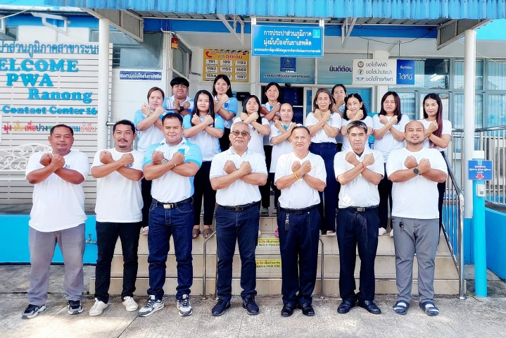 นายจีรศักดิ์ หัถชีพ ผู้จัดการการประปาส่วนภูมิภาคสาขาระนอง นายทินกร บุญญานุพันธ์ หัวหน้างาน 8 รักษาการในตำแหน่ง ผู้ช่วยผู้จัดการฯ นำทีมพนักงานและลูกจ้างในสังกัด ร่วมแสดงพลังสามัคคี กปภ.ร่วมใจ ต้านภัยยาเสพติด "ไม่เสพ ไม่ค้า ไม่สนับสนุน" เพื่อสร้างสภาพแวดล้อมการทำงานที่ปลอดภัยและยั่งยืนร่วมใจต้านภัยยาเสพติด เพื่อองค์กรที่น่าอยู่และปลอดภัยสำหรับทุกคน ทั้งยังเป็นการดำเนินการป้องกันและแก้ไขปัญหายาเสพติดในสถานประกอบกิจการตามโครงการโรงงานสีขาวอีกด้วย