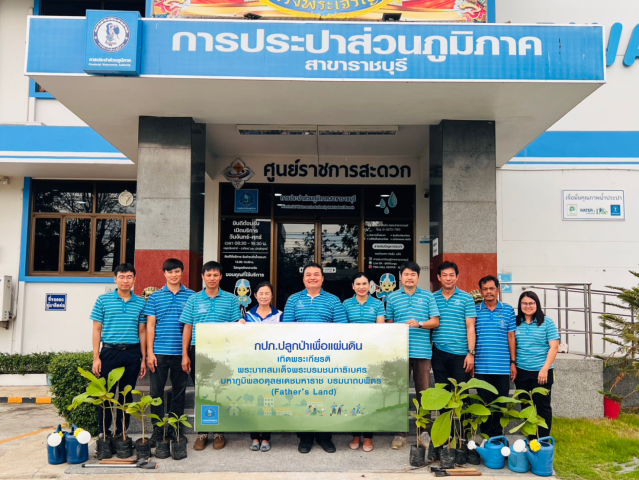 ในวันศุกร์ที่ 16 พฤษภาคม 2568 เวลา13.30น. นายสุรวุฒิ ชอบอิสระ ผจก.กปภ.สาขาราชบุรี,นางปาริฉัตร ลาภพงศ์พิพัฒน์ ผช.ผจก.กปภ.สาขาราชบุรี พร้อมด้วยหัวหน้างานและพนักงานในสังกัด ร่วมกิจกรรมโครงการ กปภ.ปลูกป่าเพื่อแผ่นดิน เทิดพระเกียรติพระบาทสมเด็จพระบรมชนกาธิเบศร มหาภูมิพลอดุลยเดชมหาราช บรมนาถบพิตร (Father’s Land) ปี 2568 โดยร่วมกันปลูกต้นไม้ บริเวณสำนักงาน กปภ.สาขาราชบุรี ต.ท่าราบ อ.เมืองฯ จ.ราชบุรี เพื่อเป็นการปลูกฝังและส่งเสริมจิตสำนึกพนักงาน ให้รัก และหวงแหนทรัพยากรป่าไม้ของชาติ อันเป็นแหล่งต้นน้ำและความอุดมสมบูรณ์แก่แผ่นดินไทยต่อไป