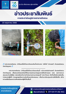 กปภ.สาขาหลังสวน นำทีมลงพื้นที่ตรวจวัดแรงดันน้ำ หน้ามาตร ในพื้นที่ อำเภอสวี อำเภอหลังสวน จังหวัดชุมพร