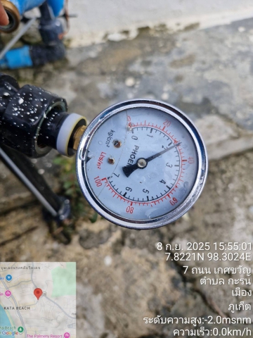 วันจันทร์ที่ 8 กันยายน 2568 การประปาส่วนภูมิภาคสาขาภูเก็ต ภายใต้การบริหารของนายสุกฤษฏิ์ กลิ่นสนธิ์ มอบหมายให้ งานบริการและควบคุมน้ำสูญเสีย 2 นำทีมลงพื้นที่่ตรวจวัดแรงดันน้ำหน้ามาตร ในพื้นที่ บริเวณถนนเกศขวัญ ต.กะรน อ.เมืองภูเก็ต จ.ภูเก็ต เพื่อตรวจวัดแรงดันน้ำที่เหมาะสมตามมาตรฐานการให้บริการของ กปภ. ผลการตรวจสอบพบว่าเฉลี่ยอยู่ที่ 2.2 Bar ซึ่งสอดคล้องกับการดำเนินงานตามมาตรฐานที่ กปภ.กำหนด (0.50 Bar) อีกทั้งเป็นโอกาสอันดีในการพบปะผู้ใช้น้ำ ร่วมพุดคุยรับฟังความคิดเห็นและข้อเสนอแนะ เพื่อนำมาปรับปรุงบริการให้ดียิ่งขึ้น สร้างความเชื่อมั่นและความพึงพอใจแก่ผู้ใช้น้ำในพื้นที่