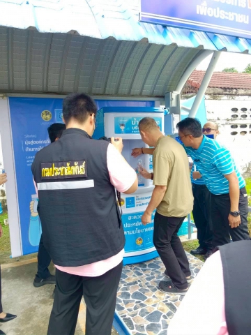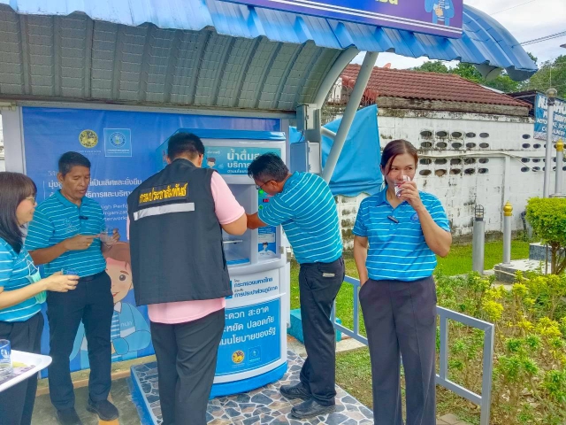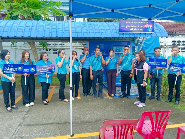 วันอังคารที่ 9 กันยายน 2568 กปภ.สาขากาญจนบุรี โดยมี นางสาวจงกล เห็นประเสริฐ ผู้อำนวยการกองระบบผลิตและควบคุมคุณภาพน้ำ นายอธิวิศน์ เกิดภาณุพัฒน์ ผจก.กปภ.สาขากาญจนบุรี นายประเสริฐ เสลาหอม ผู้ช่วยผู้จัดการ พร้อมด้วยหัวหน้างานและพนักงานในสังกัด เปิดโครงการ "ตู้กดน้ำดื่มสะอาด บริการประชาชน ฟรี" ตามนโยบายกระทรวงมหาดไทย ที่มุ่งยกระดับคุณภาพชีวิตของประชาชน ให้สามารถเข้าถึงน้ำดื่มสะอาดได้อย่างสะดวก ปลอดภัย และได้มาตรฐาน ตู้กดน้ำดื่มจะเป็นน้ำที่ผ่านการกรองน้ำระบบ RO (Reverse Osmosis) ผ่านการตรวจสอบคุณภาพตามมาตรฐานที่กำหนด เป็นการสนับสนุนการใช้ทรัพยากรน้ำอย่างรู้คุณค่า โดยประปาชาชนสามารถนำภาชนะส่วนตัว อาทิ เช่น แก้วน้ำ ถังน้ำ มาเติมน้ำดื่มได้ฟรี ณ สำนักงาน กปภ. สอดรับแนวทางรักษาสิ่งแวดล้อมอย่างยั่งยืน