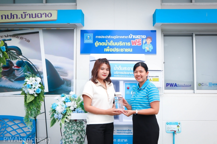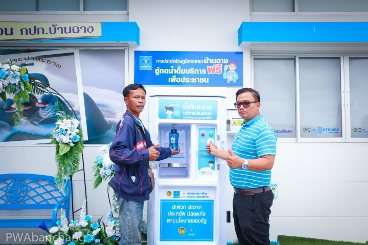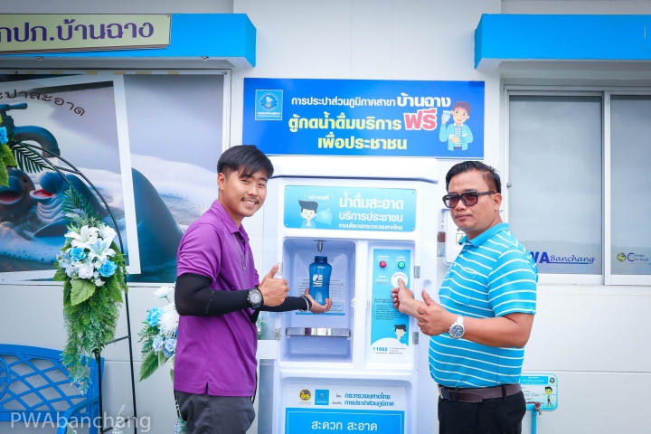 กปภ.บ้านฉาง จัดบริการน้ำดื่มสะอาดฟรี ส่งเสริมคุณภาพชีวิตประชาชน : การประปาส่วนภูมิภาคสาขาบ้านฉาง โดยนายสกล ถุงทรัพย์ ผู้จัดการฯพร้อมทีมงาน เปิดโครงการ "น้ำดื่มสะอาดราคาประหยัดให้ประชาชน" ด้วยตู้กดน้ำดื่มสะอาดระบบกรองระบบ RO โดยจัดพิธีเปิดเมื่อวันที่ 10 กันยายน 2568 ณ สำนักงาน กปภ.สาขาบ้านฉาง ประชาชนสามารถนำภาชนะส่วนตัว เช่น แก้วน้ำ ขวดน้ำ ถังน้ำ มาเติมน้ำดื่มได้ฟรีในวันและเวลาทำการ ในงานเปิดโครงการมีการแจกขวดน้ำและเชิญชวนประชาชนทดลองใช้บริการตู้น้ำดื่มสะอาด