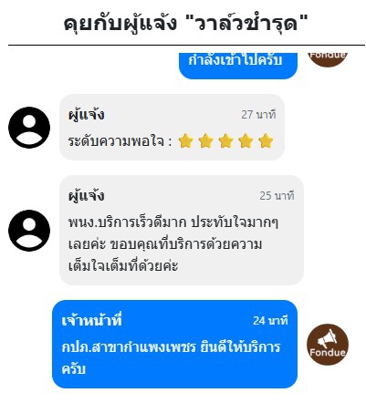 หลังรับแจ้งเรื่อง ทีมช่างของ กปภ. สาขากำแพงเพชร ได้เข้าตรวจสอบพื้นที่อย่างรวดเร็วและทันท่วงที พบว่าปัญหาเกิดจาก "ขามาตรและวาล์วเสื่อมสภาพ" จึงได้ดำเนินการเปลี่ยนอุปกรณ์ใหม่ทันที