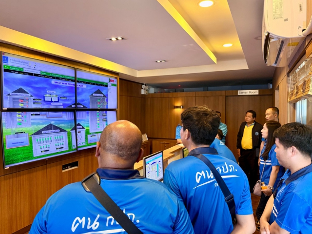 คณะได้เข้าเยี่ยมชม สถานีผลิตน้ำ ระบบ SCADA และห้องควบคุมระบบการผลิตน้ำ เพื่อแลกเปลี่ยนประสบการณ์และองค์ความรู้ด้านการบริหารจัดการระบบประปา การควบคุมคุณภาพน้ำ และการใช้เทคโนโลยีในงานผลิตน้ำ