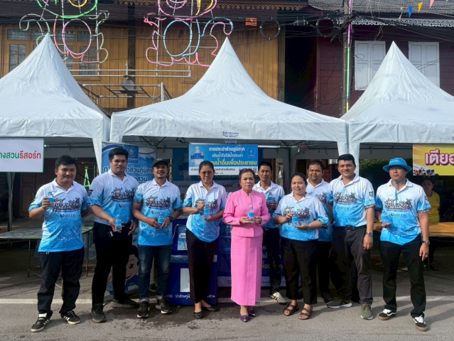 กปภ.สาขาหลังสวน แจกน้ำดื่มตราสัญลักษณ์ กปภ. ในกิจกรรม "เปิดเมืองกินฟรี"ประจำปี 2568