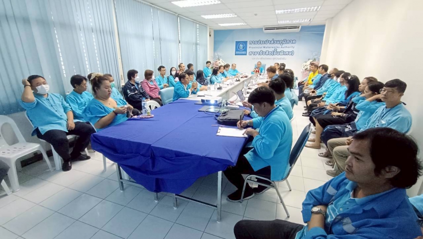 นายขวัญชัย กิจกอบชัย ผจก.กปภ.(พ)สาขารังสิต นำทีมผู้บริหาร และพนักงานในสังกัด จัดประชุมสนทนายามเช้า(Morning Talk) ประจำเดือนตุลาคม 2568 เมื่อวันที่ 14 ตุลาคม 2568 ที่ผ่านมา ณ ห้องประชุม สนง.กปภ.สาขารังสิต(พ) ทั้งนี้ ผจก.ขวัญชัยฯ ได้ติดตามการดำเนินงานด้านต่างๆ ของไตรมาสที่ 4/2568 พร้อมทั้งมอบนโยบายและแนวทางการดำเนินงานเพื่อให้เกิดความเข้าใจและสามารถปฏิบัติงานไปในทิศทางเดียวกันได้อย่างมีประสิทธิภาพ นอกจากนี้ ยังมีการ มอบรางวัลดาวเด่นประจำเดือนตุลาคม 2568 เพื่อเป็นขวัญและกำลังใจแก่พนักงานที่ปฏิบัติงานดีเด่นด้วย