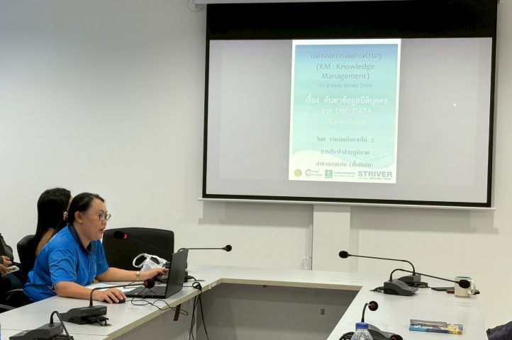โดยกิจกรรมฯ ในครั้งนี้ได้มีการถ่ายทอดองค์ความรู้ (KM) เรื่อง การค้นหาข้อมูลนิติบุคคล จาก DBD DATA Warehouse. โดยนางสาวทัศนีย์ เกตุภูงา พนักงานพัสดุ 8 สังกัดงานจัดเก็บรายได้ 2 รวมถึงการเเนะนำ หัวหน้างานที่เข้ารับตำเเหน่งใหม่ ประกอบด้วย