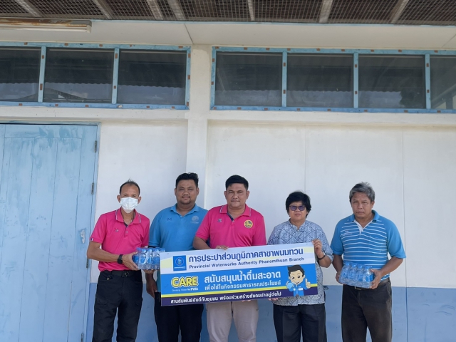 การประปาส่วนภูมิภาคสาขาพนมทวน นำโดย น.ส.ธิดารัตน์ ศรีบำรุง ผจก.กปภ.สาขาฯ พร้อมด้วย หัวหน้างานผลิต ร่วมสนับสนุนน้ำดื่มบรรจุขวดจำนวน 360 ขวดให้กับทางที่ว่าการอำเภอพนมทวน