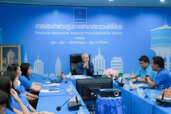 ในวันพุธที่ 22 ตุลาคม 2568 การประปาส่วนภูมิภาคสาขาประจวบคีรีขันธ์ นำโดย นายรัตนิกร หน่อแก้ว ผจก.กปภ.สาขาประจวบคีรีขันธ์พร้อมด้วยหัวหน้างานและพนักงานในสังกัด ให้การต้อนรับ นายศรายุธ แก้วสินธุ์ รองผู้ว่าการ (ปฏิบัติการ 4) ในการตรวจเยี่ยม กปภ.สาขาประจวบคีรีขันธ์ โดยได้มอบนโยบายต่างๆ ซึ่งได้ให้ความสำคัญในเรื่องของการจัดทำ Masterplan ของ กปภ.สาขา เพื่อจัดเตรียมข้อมูลแนวทางการดำเนินงานของ กปภ. ให้สามารถอธิบายทำความเข้าใจกับหน่วยงานภายนอกที่เกี่ยวข้องได้ ร่วมหารือให้คำแนะนำแนวทางการดำเนินการด้านการบริหารจัดการน้ำดิบและการผลิตจ่ายน้ำประปา และมอบแนวทางในการกำหนดเป้าหมายการดำเนินงานโดยให้วิเคราะห์ปัจจัยให้รอบด้าน ทั้งแนวโน้มและกิจกรรมพิเศษ และเน้นย้ำให้ความสำคัญในการจัดทำ Workload เพื่อให้ กปภ.สาขาสามารถวิเคราะห์อัตรากำลังที่เหมาะสมได้ รวมถึงติดตามผลการดำเนินงานของ กปภ.สาขา ด้านต่างๆให้เป็นไปตามเป้าหมาย และลงพื้นที่ติดตามปริมาณน้ำดิบ ณ อ่างเก็บน้ำคลองบึง ทั้งนี้ได้ให้กำลังใจแก่พนักงานในการปฏิบัติงาน รับฟังปัญหาอุปสรรคและพร้อมสนับสนุนชี้แนะแนวทางการแก้ไขปัญหา เพี่อให้สามารถดำเนินงานให้บรรลุผล เพื่อประโยชน์ขององค์กรและประชาชนต่อไป