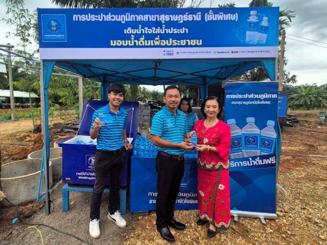การประปาส่วนภูมิภาคสาขาสุราษฎร์ธานี (ชั้นพิเศษ) บริการน้ำดื่มตราสัญลักษณ์ กปภ. ในโครงการจัดแสดงผลความสำเร็จการขับเคลื่อนงานพัฒนาชุมชน ปี 2568