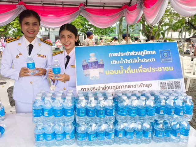พร้อมกันนี้การประปาส่วนภูมิภาคสาขาพัทลุง ได้ร่วมสนับสนุนน้ำดื่มบรรจุขวดตราสัญลักษณ์ กปภ.จำนวน 200 ขวด ให้ผู้เข้าร่วมพิธีในครั้งนี้ด้วย