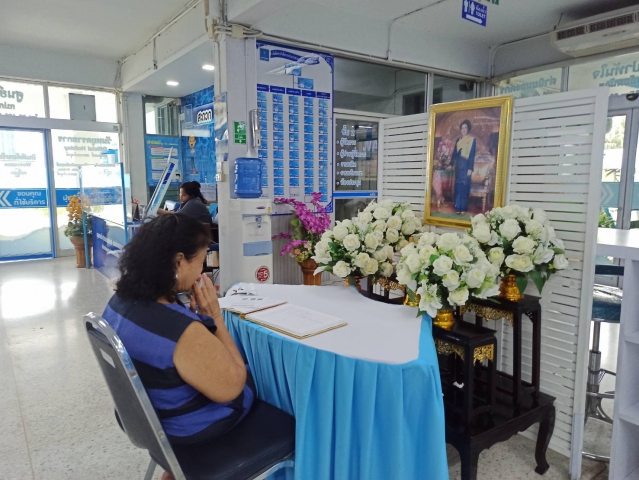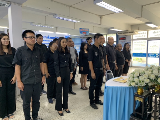 วันที่ 28 ตุลาคม 2568 การประปาส่วนภูมิภาคสาขาอ้อมน้อย นำโดยนายสุธี แสงเจือ ผจก.กปภ.สาขาอ้อมน้อย นายนพพล วัฒนสืบสิน ผช.ผจก. พร้อมหัวหน้างาน พนักงานในสังกัด ร่วมลงนามถวายอาลัย เบื้องหน้าพระฉายาลักษณ์ สมเด็จพระนางเจ้าสิริกิติ์ พระบรมราชินีนาถ พระบรมราชชนนีพันปีหลวงด้วยความสำนึกในพระมหากรุณาธิคุณเป็นล้นพ้นอันหาที่สุดมิได้ ที่พระองค์ทรงอุทิศพระวรกายปฏิบัติพระราชกรณียกิจนานัปการ เพื่อประโยชน์สุขของประชาชนชาวไทยโดยแท้จริง ทั้งนี้ กปภ.สาขาอ้อมน้อย ยังเปิดให้ประชาชนชนผู้มาใช้บริการที่สาขา ได้ร่วมลงนามแสดงความอาลัยในเวลาทำการ พร้อมประดับผ้าขาวดำริมรั้วสำนักงานเพื่อแสดงความอาลัยและถวายพระเกียรติอย่างสูงสุด