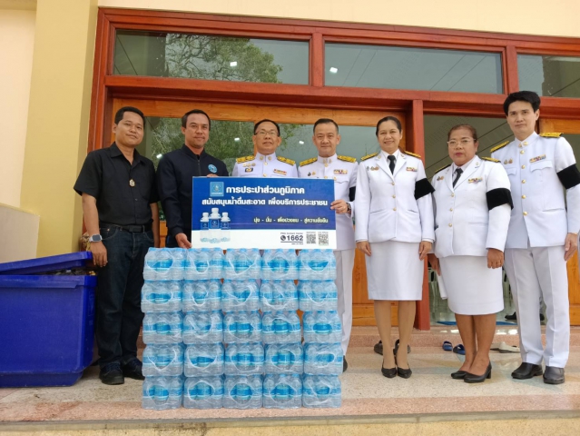 ทั้งนี้ กปภ.สาขากำแพงเพชร ร่วมภารกิจจิตอาสา บริการน้ำดื่มแก่ผู้ร่วมพิธี ในโอกาสอันสำคัญยิ่งนี้ การประปาส่วนภูมิภาค (กปภ.) สาขากำแพงเพชร ได้ร่วมเป็นส่วนหนึ่งในการแสดงความจงรักภักดีและบำเพ็ญสาธารณประโยชน์ โดยได้จัดตั้ง จุดบริการน้ำดื่มบรรจุขวดตราสัญลักษณ์ กปภ. เพื่ออำนวยความสะดวกและบริการน้ำดื่มที่สะอาด ได้มาตรฐานแก่พสกนิกรและผู้เข้าร่วมพิธีตลอดช่วงเวลาของการจัดงาน