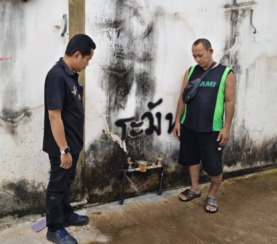 นายศศิกิจ เพ็งเอี่ยม นายช่างโยธา 7 (ปฏิบัติหน้าที่มิสเตอร์ประปา) ลงพื้นที่ตรวจสอบทันทีพบว่า ขามาตรวัดน้ำมีการชำรุดและหัก เป็นสาเหตุให้น้ำเกิดการรั่วไหล สร้างความไม่สะดวกให้กับลูกค้า เพื่อแก้ไขปัญหาดังกล่าวอย่างเร่งด่วน จึงได้ฃดำเนินการเปลี่ยนขามาตรวัดน้ำใหม่ให้เสร็จเรียบร้อยแล้ว ในทันที ทำให้สามารถกลับมาใช้งานระบบน้ำได้อย่างปกติ สร้างความประทับใจให้กับลูกค้าอย่างมาก