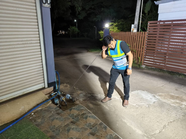 นายภูมินทร์ นะมินิล ผจก.กปภ.สาขาปักธงชัย มอบหมายให้นายอนันต์ แซะจอหอ หัวหน้างานบริการฯ และพนักงานบริการฯ ในสังกัด สานต่อนโยบายลดน้ำสูญเสีย สำรวจ ค้นหา ท่อแตกรั่ว ในระบบจำหน่าย (STEP TEST) บริเวณ DMA 3 ทางเข้าเทศบาลเมืองเมืองปักฝั่งซ้าย ในวันจันทร์ที่ 10 พฤศจิกายน พ.ศ.2568