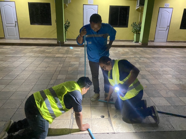 นายจีรศักดิ์ หัถชีพ ผู้จัดการการประปาส่วนภูมิภาคสาขาระนอง พร้อมด้วย นายทินกร บุญญานุพันธ์ ผู้ช่วยผู้จัดการฯ มอบหมายทีมงานบริการและควบคุมน้ำสูญเสีย โดย นายนทีบดี มณีกุล หัวหน้างานฯ พร้อมพนักงานในสังกัด ลงพื้นที่สำรวจหาท่อแตกรั่ว ตามแผนประจำเดือนพฤศจิกายน 2568 ด้วยการทำ Step test พื้นที่ DMA-01 บริเวณตั้งแต่ร้านอาหารสวนตอ ไปจนถึงหมู่บ้านสุภัสรา ตำบลบางนอน อำเภอเมือง จังหวัดระนอง พบจุดแตกรั่ว จำนวน 5 จุด ดำเนินการซ่อมแซมต่อไป