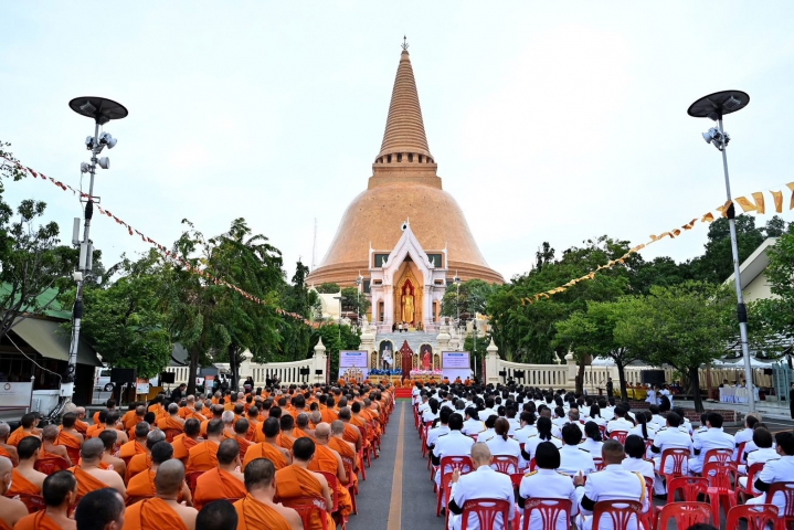 และเวลา 17.00น. พิธีสวดพระพุทธมนต์และเจริญจิตภาวนา ถวายพระราชกุศลแด่ พระบาทสมเด็จพระปรเมนทรรามาธิบดีศรีสินทรมหาวชิราวุธ พระมงกุฎเกล้าเจ้าอยู่หัว พระมหาธีรราชเจ้า เนื่องในโอกาสวันคล้ายวันสวรรคตครบ 100 ปี 25 พฤศจิกายน 2568 และสมเด็จพระเจ้าบรมวงศ์เธอ เจ้าฟ้าเพชรรัตนราชสุดา สิริโสภาพัณณวดี กรมพระนครปฐมบรมขัตติยานี มหาธีรราชธิดา เนื่องในโอกาสวันประสูติครบ 100 ปี 24 พฤศจิกายน 2568 โดยมี นางสาวอโรชา นันทมนตรี ผู้ว่าราชการจังหวัดนครปฐม เป็นประธานพิธี และมีพระธรรมวชิรเจติยาจารย์ ผู้รักษาการแทนเจ้าอาวาสวัดพระปฐมเจดีย์ ราชวรมหาวิหาร พร้อมด้วยพระเถรานุเถระ คณะสงฆ์ รองผู้ว่าราชการจังหวัด รองนายกเหล่ากาชาดจังหวัด หัวหน้าส่วนราชการ หัวหน้าหน่วยงานรัฐวิสาหกิจ ภาคส่วนต่าง ๆ และประชาชนชาวจังหวัดนครปฐม ร่วมพิธีเป็นจำนวนมาก