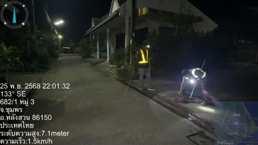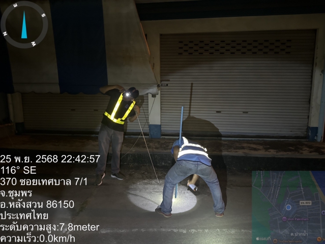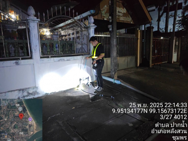 วันที่ 25 พฤศจิกายน 2568 นำโดย นายอนุเทพ แดงบุญ ผจก.กปภ.สาขาหลังสวน พร้อมด้วยหัวหน้างานบริการควบคุมน้ำสูญเสีย และพนักงานในสังกัด ออกสำรวจหาท่อแตก-ท่อรั่ว และดำเนินการปรับ PRV เพื่อลดน้ำสูญเสียของแม่ข่ายหลังสวน ในพื้นที่ DMA-06-01 ครัวสมหวัง ต.ปากน้ำ อ.หลังสวน จ.ชุมพร โดยการสำรวจหาท่อแตก-ท่อรั่ว ในครั้งนี้ เพื่อให้ลูกค้าของ กปภ. ได้ใช้น้ำอุปโภค บริโภค อย่างมีประสิทธิภาพและทั่วถึง