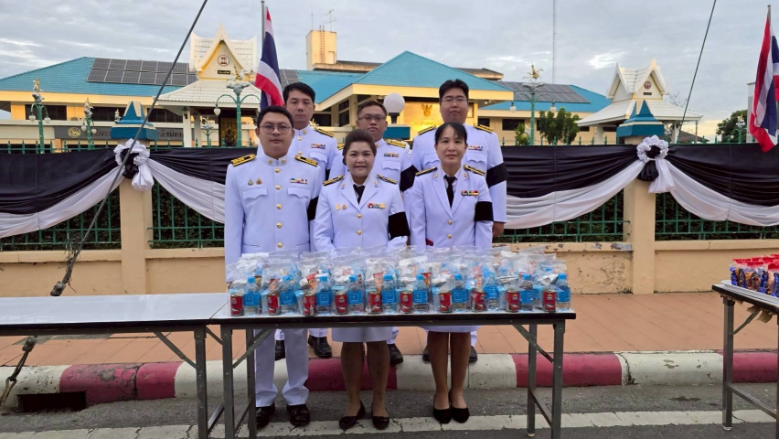 เวลา ๐๗.๐๐ น. มีพิธีเจริญพระพุทธมนต์และทำบุญตักบาตรถวายพระราชกุศล จำนวน ๓๐ รูป