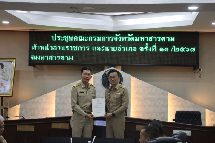 การประปาส่วนภูมิภาคสาขามหาสารคาม โดย นายคมกริช คมขาว ผู้จัดการการประปาส่วนภูมิภาคสาขามหาสารคาม เข้ารับมอบใบรับรองมาตรฐานการป้องกันและแก้ไขปัญหายาเสพติดในสถานประกอบกิจการ (มยส.) ปี 2568 จากนายสมเกียรติ วิริยะกุลนันท์ รองผู้ว่าราชการจังหวัดมหาสารคาม รักษาราชการแทนผู้ว่าราชการจังหวัดมหาสารคามณ ห้องประชุมพระบรมธาตุนาดูน ชั้น 4 ศาลากลางจังหวัดมหาสารคาม พร้อมทั้งเข้าร่วมประชุมคณะกรมการจังหวัดมหาสารคาม หัวหน้าส่วนราชการ และนายอำเภอ ครั้งที่ 11/2568 เมื่อวันที่ 28 พฤศจิกายน 2568