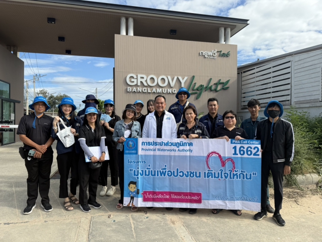 เมื่อวันพฤหัสบดีที่ 4 ธันวาคม 2568 การประปาส่วนภูมิภาคสาขาแหลมฉบัง นำโดย นายอนันต์ เรศจะโปะ ผู้จัดการ การประปาส่วนภูมิภาคสาขาแหลมฉบัง พร้อมหัวหน้างานผลิต,หัวหน้างานอำนวยการ และพนักงานในสังกัด ได้จัดกิจกรรม "โครงการมุ่งมั่นเพื่อปวงชน เติมใจให้กัน" เฉลิมพระเกียรติ ครั้งที่ 1/69 บริเวณ หมู่บ้านGroovy Lightบางละมุง โดยได้ออกพบปะลูกค้าสอบถามความพึงพอใจในการให้บริการของ กปภ. ทั้งด้านผลิตภัณฑ์และบริการ, ระบายตะกอนออกจากเส้นท่อ, ตรวจสอบคุณภาพน้ำ และบริการล้างถังพักน้ำบ้านลูกค้า พร้อมทั้งแนะนำช่องทางการติดต่อสื่อสารผ่าน Social Media, การตรวจสอบยอดค่าน้ำผ่านแอพ PWA Plus Life และไลน์@pwathailand