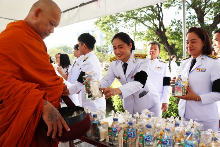 การประปาส่วนภูมิภาคสาขาชลบุรี (ชั้นพิเศษ) นำโดย นายจตุพร อิ่มสำราญ ผู้จัดการการประปาส่วนภูมิภาค (ชั้นพิเศษ) สาขาชลบุรี, นายปฐพงศ์ รุ่งเรือง ผู้ช่วยผู้จัดการการประปาส่วนภูมิภาค (ชั้นพิเศษ) สาขาชลบุรี มอบหมาย พนักงานในสังกัด ร่วมพิธีเจริญพระพุทธมนต์และทำบุญตักบาตรถวายพระราชกุศล เนื่องในวันคล้ายวันพระบรมราชสมภพ พระบาทสมเด็จพระบรมชนกาธิเบศร มหาภูมิพลอดุลยเดชมหาราช บรมนาถบพิตร วันชาติ และวันพ่อแห่งชาติ 5 ธันวาคม 2568 ณ หอพระพุทธสิหิงค์มิ่งมงคลสิรินาถ และร่วมวางพานพุ่มดอกไม้ถวายราชสักการะ พร้อมสนับสนุนน้ำดื่มบรรจุขวดตราสัญลักษณ์ กปภ. จำนวน 960 ขวด ณ สนามหน้าศาลากลางจังหวัดชลบุรี เมื่อวันที่ 5 ธันวาคม 2568