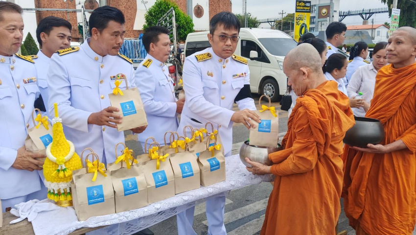 วันศุกร์ที่ 5 ธันวาคม 2568 กปภ.สาขากาญจนบุรี โดย นายอธิวิศน์ เกิดภาณุพัฒน์ ผู้จัดการ กปภ.สาขากาญจนบุรี มอบหมาย นายณรงค์ศักดิ์ แก้วเขียว ผู้ช่วยผู้จัดการ พร้อมด้วยหัวหน้างานและพนักงานในสังกัด เข้าร่วมกิจกรรมเนื่องในวันคล้ายวันพระราชสมภพ พระบาทสมเด็จพระบรมชนกาธิเบศร มหาภูมิพลอดุลยเดชมหาราช บรมนาถบพิตร วันชาติ และวันพ่อแห่งชาติ 5 ธันวาคม 2568 พิธีทำบุญตักบาตรถวายเป็นพระราชกุศล พิธีวางพานพุ่มดอกไม้และพิธีถวายบังคม เพื่อเป็นการแสดงถึงความจงรักภักดีและน้อมรำลึกถึงพระเกียรติคุณและพระมหากรุณาธิคุณของสถาบันพระมหากษัตริย์ ณ ศาลา 60 พรรษามหาราช เทศบาลเมืองกาญจนบุรี