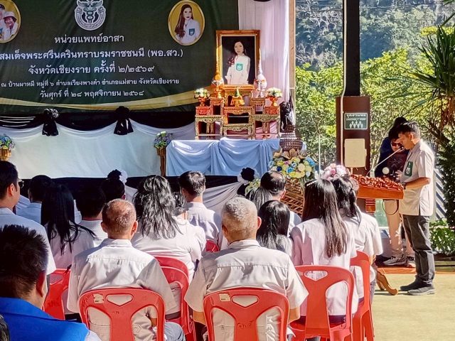วันศุกร์ ที่ 28 เดือนพฤศจิกายน 2568 การประปาส่วนภูมิภาคสาขาแม่สาย นายคมสัน สัมมา ผู้จัดการการประปาส่วนภูมิภาคสาขาแม่สาย ได้มอบหมายให้พนักงานและลูกจ้างในสังกัด เข้าร่วมกิจกรรมหน่วยแพทย์เคลื่อนที่ (พอ.สว.) ประจำปี 2568 ในวันศุกร์ ที่ 28 พฤศจิกายน 2568 ณ โรงเรียนบ้านพ่อหลวงอุปถัมภ์5 บ้านผาหมี หมู่ที่ 6 ตำบลเวียงพางคำ อำเภอแม่สาย จังหวัดเชียงราย พร้อมทั้งสนับสนุนน้ำดื่ม ตราสัญลักษณ์ กปภ.แก่ผู้เข้าร่วมกิจกรรม จำนวน 200 ขวด