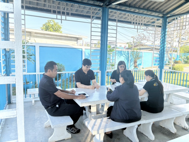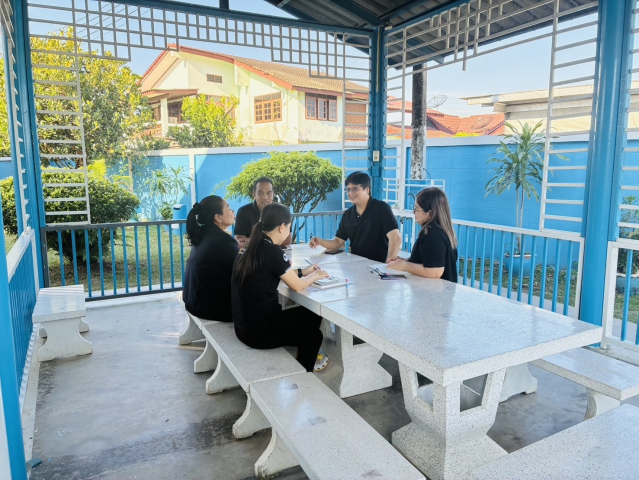 และหัวหน้าทุกสายงาน จัดประชุมสายงานเพื่อหารือและติดตามผลการดำเนินงานในด้านต่าง ๆ ณ ศาลาพักผ่อนบริเวณสำนักงานของ กปภ.สาขาสามพราน